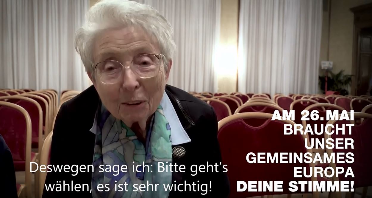 Die 90-jährige Helga Feldner-Busztin appelliert in einer Kampagne von SOS Mitmensch: "Ich sehe eine beängstigende Entwicklung in Europa. Bitte, gehts wählen!"